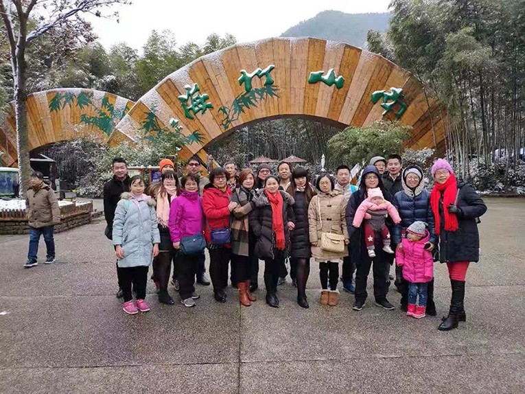 2019年1月上海虹潤公司全體員工懷著辭舊迎新的愉悅心情分乘七輛小車前往江蘇溧陽天目湖自駕游。一行人前往天目湖涵田半山溫泉。這是一處依著山坡而建的溫泉,只見層層熱氣與天空中紛紛揚揚的雪花相互交織著,形成一道獨特的風景。這熱氣騰騰的溫泉洗去了一行人上午的舟車勞頓。晚上我們住宿天目湖萬豪大酒店。次日上午我們前往地處蘇浙皖三省交界以竹文化和壽文化為主題素有‘天堂南山、夢幻竹海’美譽的南山竹海景區。一行人披著鵝毛細雪,坐在纜車上靜閉雙眸聆聽竹海的呼吸與輕語,時而欣賞竹海的波瀾壯闊。下午返回上海。