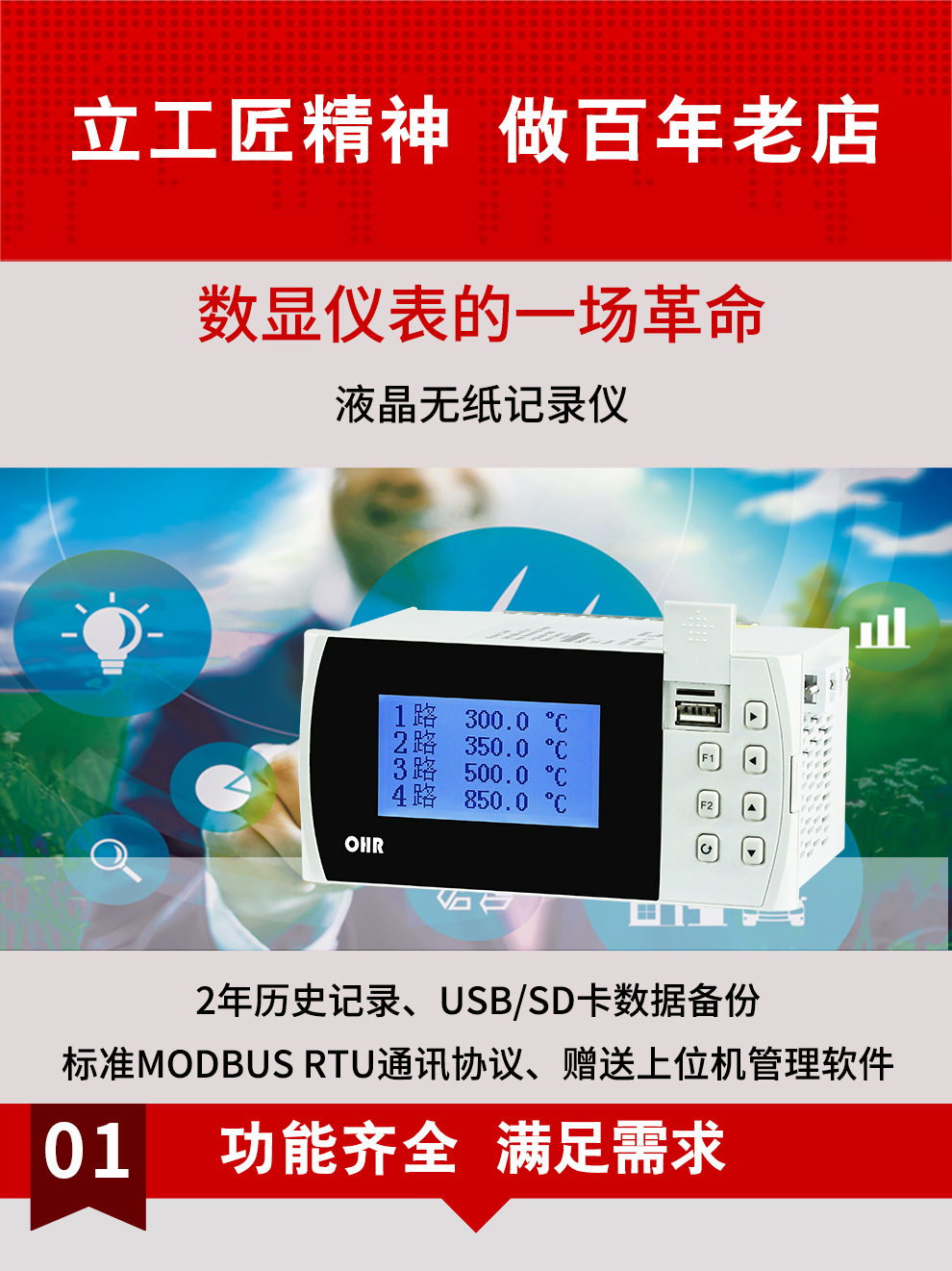 OHR-G100/G100R系列液晶漢顯控制儀/無紙記錄儀是一種智能化的多功能二次儀表,適用于對各種過程參量進行監測、控制、記錄與遠傳。