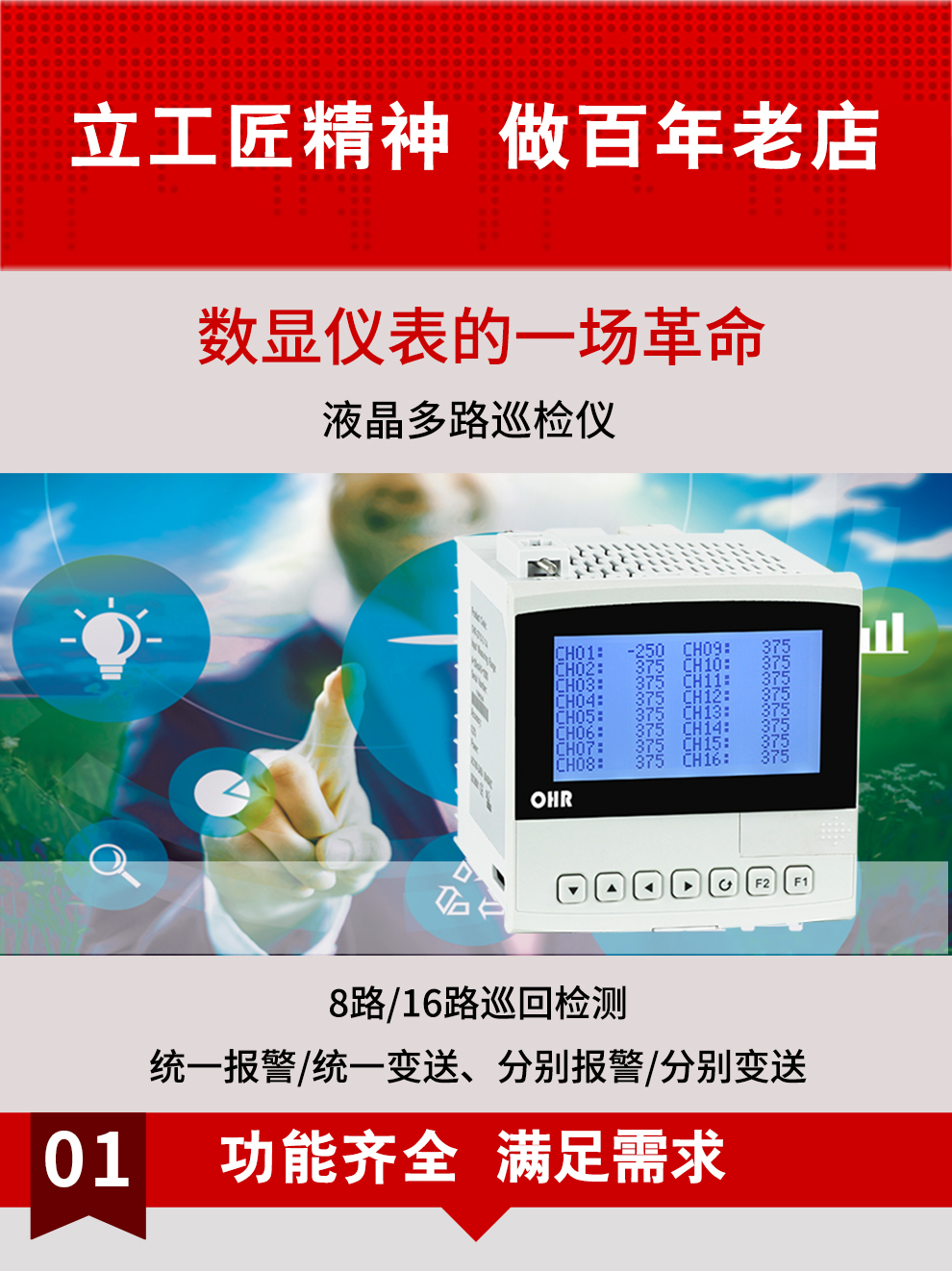 虹潤公司是專業(yè)生產(chǎn)多路溫度巡檢儀的國家專精特新“小巨人”企業(yè),生產(chǎn)的液晶多路巡檢儀,具有8路/16路測量通道,全切換信號輸入,統(tǒng)一報警統(tǒng)一變送輸出,分別報警分別變送輸出,RS485/RS232通訊等特點(diǎn)。產(chǎn)品獲得巡回檢測顯示方法及裝置、儀表殼體等2項國家發(fā)明專利,主持起草工業(yè)過程控制系統(tǒng)用模擬輸入兩位或多位輸出儀表、物聯(lián)網(wǎng)智能溫度儀表通用技術(shù)條件等2項國家標(biāo)準(zhǔn),以及通信系統(tǒng)多通道數(shù)據(jù)采集控制終端規(guī)范軍用標(biāo)準(zhǔn),參與國際5G標(biāo)準(zhǔn)制定,取得液晶多回路測量顯示控制儀等4項相關(guān)軟件著作權(quán)。產(chǎn)品廣泛應(yīng)用于電力、石化、冶金、制藥、水處理、機(jī)械配套等各種工業(yè)現(xiàn)場。