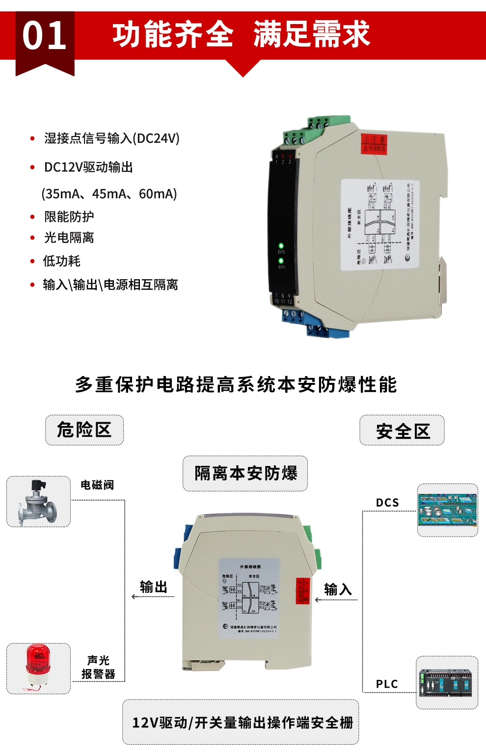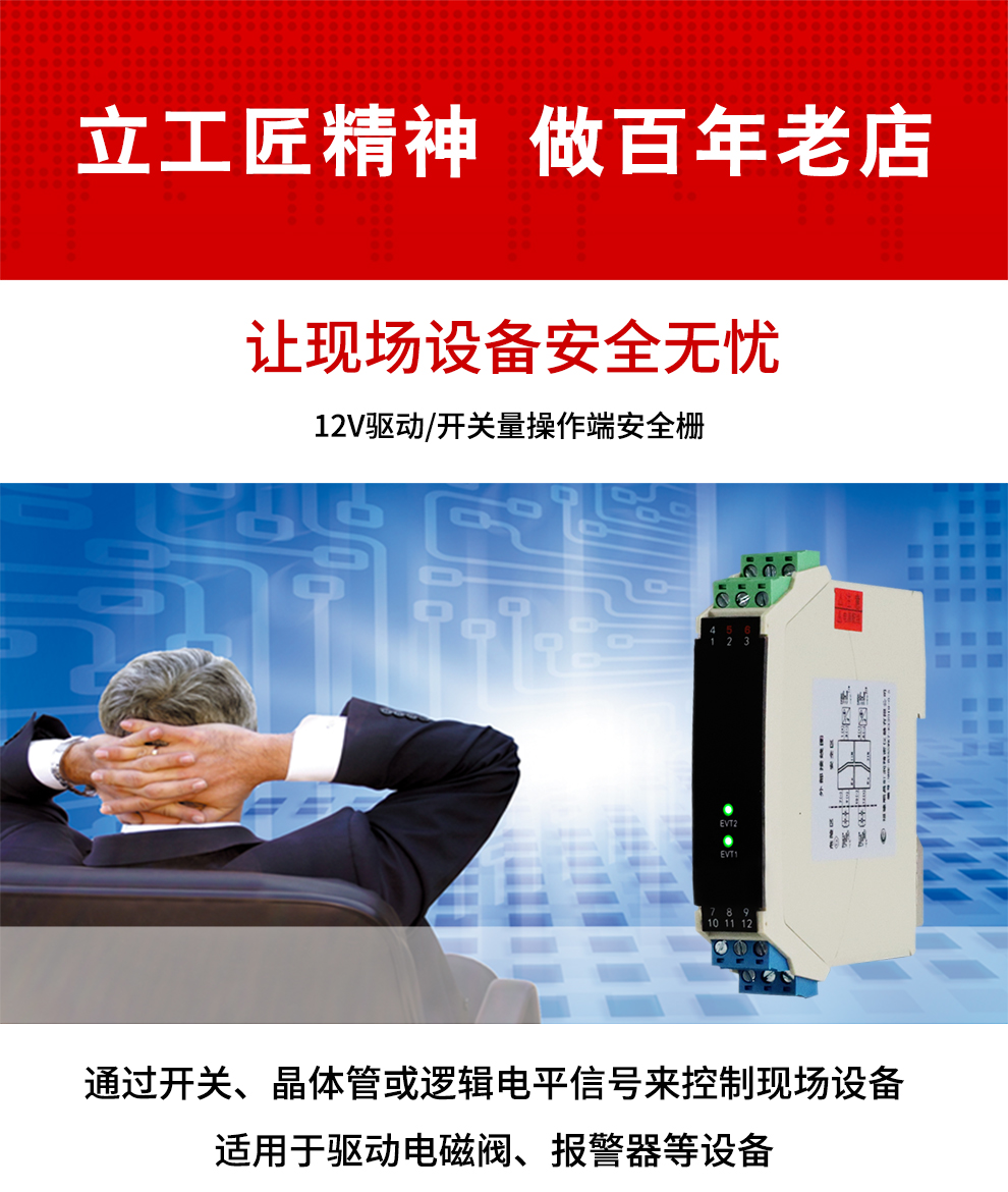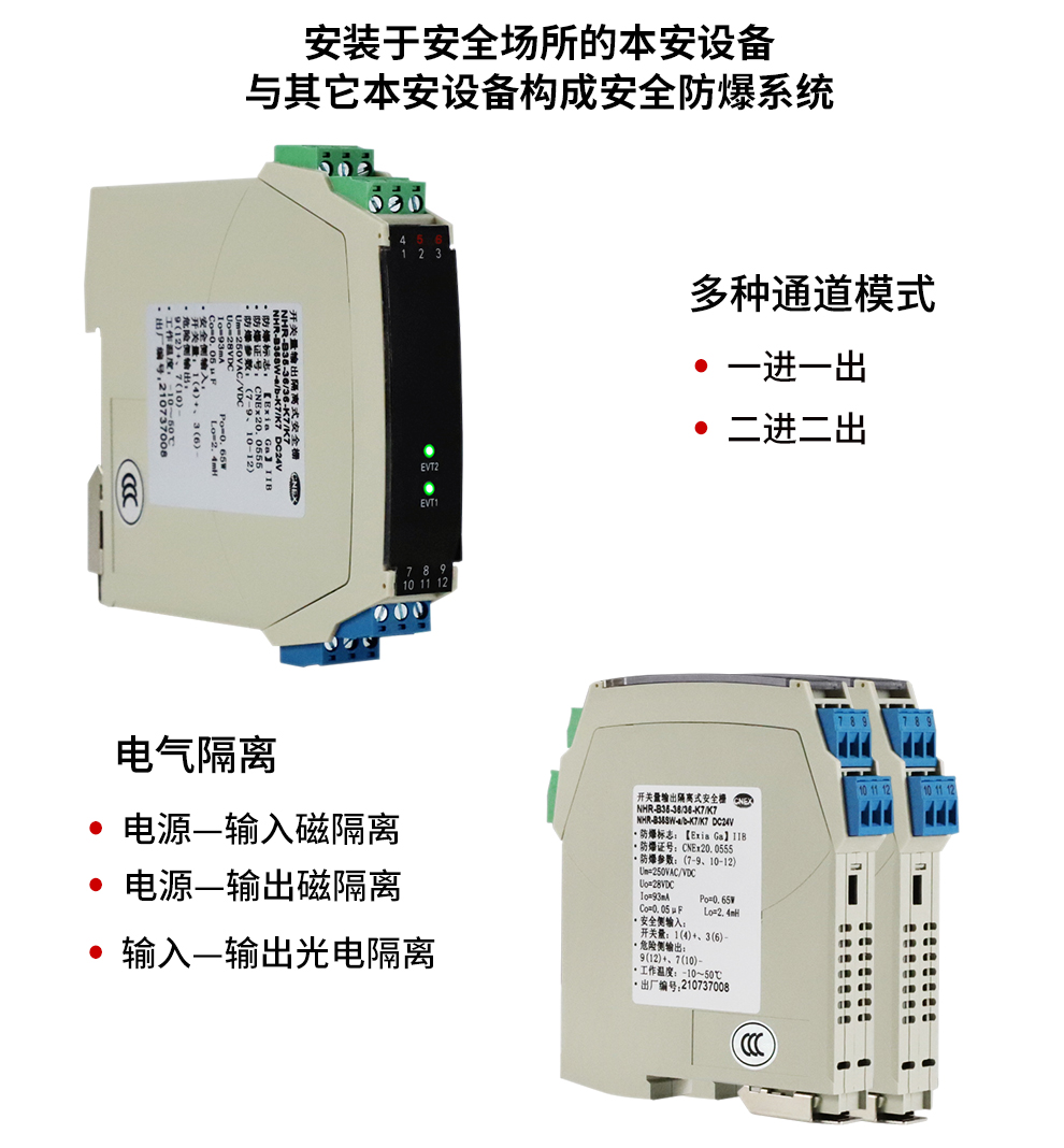 OHR-B35系列12V驅(qū)動,開關(guān)量輸出操作端隔離柵將安全區(qū)的電源通過開關(guān)控制,驅(qū)動危險區(qū)的現(xiàn)場本安設(shè)備,它允許控制開關(guān)直接連接到24V供電回路的任一端。本產(chǎn)品適用于驅(qū)動如電磁閥、聲光報警等本安設(shè)備。